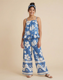 Bring effortless summer style to her wardrobe with this blue floral printed co-ord set. Designed with a sleeveless ruffle-detail top and matching wide-leg palazzo pants, this set offers a breezy silhouette and all-day comfort. The soft, lightweight fabric and playful floral print make it perfect for warm days and relaxed outings.